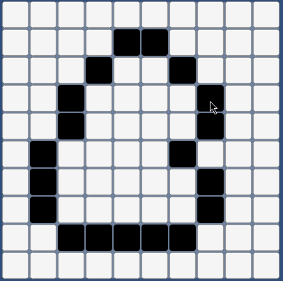 假设在一副图画中,有一圈封闭的曲线,现在需要填充该封闭区域。如下图所示,黑色方块代表该方块为曲线方块: